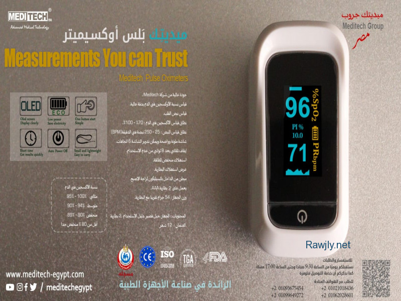 جهاز oxy b "oximeter" من meditech group 📍 قياس نبضات القلب و معدل تدفق الدم بالأوعيه الدمويه 📍 شاشه ملونه و واضحه 📍 امكانيه تدوير الشاشه لاربعه اتجاهات 📍 مبطن من الداخل بالسليكون لراحه الأصبع 📍 يعمل بالبطاريه بضمان meditech group "المركز الرئيسي بالشرق الأوسط" حاصل على شهادات الجوده الاوروبيه iso , ce جميع الاجهزه مسجله ب وزاره الصحه المصريه للاستفسار على 👈 01015790607
