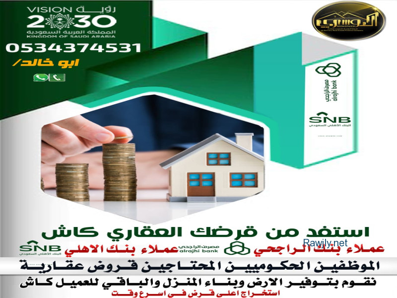 شركة الدوسري العقارية استخراج اعلى قرض عقاري سكني استفد من قرضك العقاري كاش الموظفين الحكوميين المحتاجين قروض عقارية نقوم بتوفير الارض وبناء المنزل والباقي للعميل كاش عملاء بنك الراجحي عملاء بنك الاهلي استخراج اعلى قرض في اسرع وقت سيولة +بيت سكني سيوله وفائض مالي قوي للمدعوم والغير المدعوم لمن يريد فتح مشروع-استثمار-قضاء دين-تكمله منزل شراء بيت جاهز-ترتيب وضع نوفرلك الكاش ولك حرية التصرف بناء ذاتي للمدعوم وغير المدعوم افراغ الاراضي للعميل البناء الذاتي للعميل تشيطيب شراء الاراضي تسديد المتعثرات بنـاء عظم الانجاز خلال مدة اربعة اسابيع فقط قرضك العقاري بمميزات متعددة وتسهيل سيولة قوية 40% من قيمة القرض للبناء و 60% للعميل من القرض تحقيق حلمك هدفنا بيع - شراء - تمويل - دعم-ادارة املاك-اسثتمار- تثمين-تقييم يتم انجاز العمل واستخراج القرض خلال اسبوعين عمل نستقبل عروضكم وطالباتكم العقارية سرعه وانجاز ثقه بحجم المسؤلية ابو خالد 0534374531 للتواصل واتس اب مباشرة https://api.whatsapp.com/send?phone=966534374531 زورو موقعنا الإلكتروني عبر الرابط التالي https://dbank2030.blogspot.com/ https://caldosri.blogspot.com/ حساب تويتر @aldosribank صفحتنا على الفيس بوك https://www.facebook.com/aldosri2030 نستقبل اتصالاتكم على مدار 24 ساعه اذا لم يتم الرد عليك عبر الاتصال نرجو منك ارسال رساله عن طريق الواتس اب وسوف يتم الرد عليك باسرع وقت