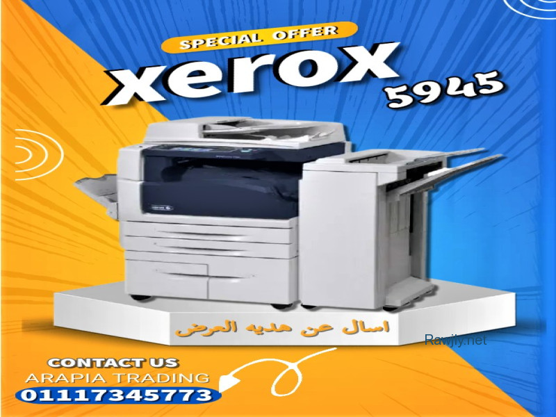 # شركه ارابيا للتجاره 💯 احصل على الافضل لانجاز اعمالك افضل 💯 شغلك محتاج الجوده و التحمل و قوه الاداء يبقى بنرشحلك الموديل ده👍 ✅ احدث اله تصوير وطباعه ليزر اسود xerox 5945 ✔ سرعه 45 صوره / الدقيقه ✔ خاصيه التوزيع ✔ خاصيه الدوبلكس ✔ مقاس ورق a4 a5 a3 ✔ وزن ورق من 70 : 220 جرام ✔ امكانيه الطباعه من خلال فلاشه ✔ تحمل شهرى يصل الى 150 الف نسخه ✔ فيدر - شاشه تاتش ✔ تصوير اسود -طباعه اسود - سكانر الوان ومميزات اخرى كثيره 🤝 هديه الشركه حبر يكفى لعمل 30 الف نسخه 🤝 🔴 قطع غيارها واحبارها متوفره لدينا 🔴 السعر شامل الضمان 🔴 الالات استيراد خارج بحاله ممتازه 🔴العرض لا يشمل تقسيط او استبدال 👌 العرض مستمر لمده اربع ايام او حتى نفاذ الكميه 👌 🔴 متاح موديلات متنوعه ليزر اسود والوان تناسب جميع النشاطات لمعرفه الموديل المناسب لنشاطك تواصل معنا 📞 01117345773 - 01117345733 مقرنا 🏠 جسر السويس - القاهره