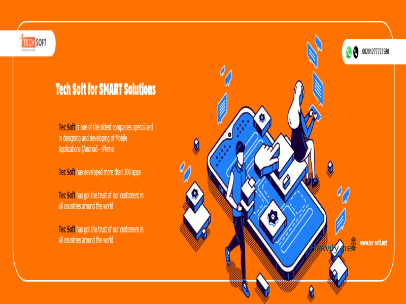 tec soft is one of the oldest companies specialized in designing and developing of mobile applications (android - iphone), websites, reserving domains and hosting services for websites and applications, and managing digital marketing campaigns since 2007. tec soft has developed more than 300 apps, and more than 1000 websites during these years . tec soft has got the trust of our customers in all countries around the world such as egypt, saudi arabia, the emirates, and oman. , kuwait, bahrain, turkey and mauritania. tec soft seeks to achieve leadership in the field of designing and developing mobile applications in egypt and all over the arab world. tec soft ------------------- smart solutions for smart business inside egypt call us on 👉 01277773580 outside egypt call us on 👉 00201277773580 whatsapp us on 👇 https://wa.me/+201277773580 email us on👇 tec.soft.smart@gmail.com our website👇 https://tec-soft.net/en/ youtube channel of tech soft 👇 https://www.youtube.com/@-tecsoft instagram page of tech soft 👇 https://www.instagram.com/techsoftsmartapps/