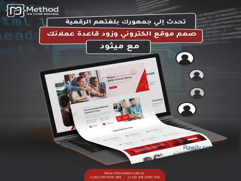 من الأكيد أن كل اصحاب المشاريع هيحتاج موقع الكتروني من method عشان يقدر يوصل لعملائك من كل مكان في الوطن العربي بمجرد عمل بحث عنه في جوجل 🔍 ودا هيفيد جميع مجالات العمل بكافة التخصصات كوسيلة تعريفية عنك للعملاء من خلال الموقع التعريفي لان عملائك هيقدروا يوصلوا🔻 للخدمات المتوفرة بكل التفاصيل والاستفسارات اللي محتاجنها مع معرفة سابقة أعمالك واللي بتكون السبب الأساسي لزيادة الثقة وكمان تسهيل عملية التواصل مع توفير الكثير من المميزات وبالتالي اتمام الديلات بشكل بروفيشنال للاستفسارات تواصل معنا من خلال: 01010007526